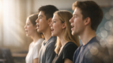 発表の場面では、巨大な筆を使って一文字が書かれます。筆の太さや動きがアップで映されることで、書くという行為そのものに集中が集まります。背景に清水寺の木組みや空が入ることで、手元の動きがより引き締まって見え、一画一画に意味が宿るような印象になります。軽く書かれた文字ではなく、重さを持って書かれているように見えるのは、道具の大きさと場所の雰囲気が重なっているからです。