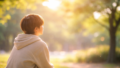 少し外れた方向や、遠くの何かを見ているようにも、心の内側を見つめているようにも感じられます。